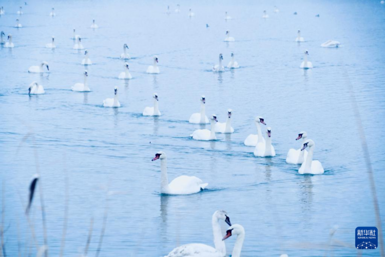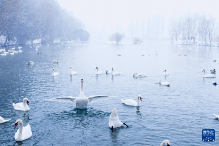 这是1月8日在新疆伊宁县天鹅泉拍摄的天鹅。