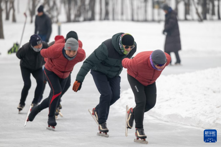 1月7日,滑冰爱好者在哈尔滨丁香公园内滑冰。