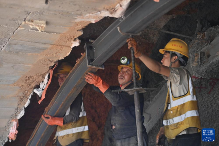 1月8日,工人在广西鱼宜高速公路果福隧道建设工地作业。