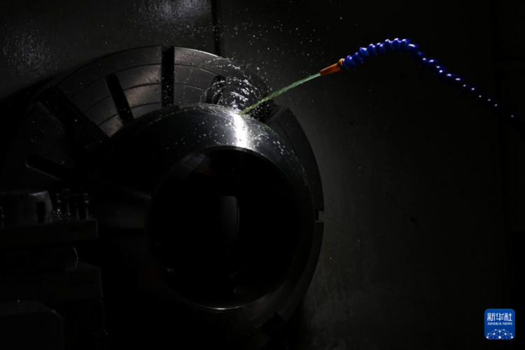 1月7日,在宝鸡市永盛泰钛业有限公司精加工车间,数控机床在加工石油化工钛合金特种球阀部件。