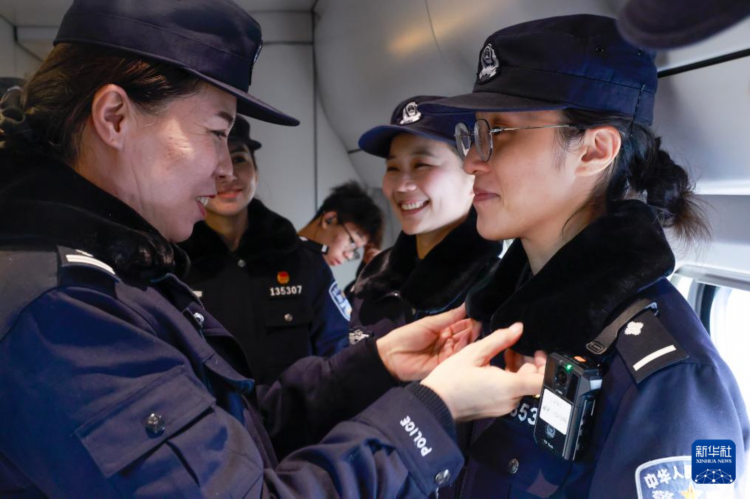 1月8日,老一代女乘警陈杨眉(右)在“丝路风华”女子乘警组成员出乘前反复叮嘱。