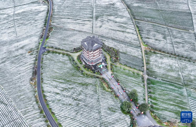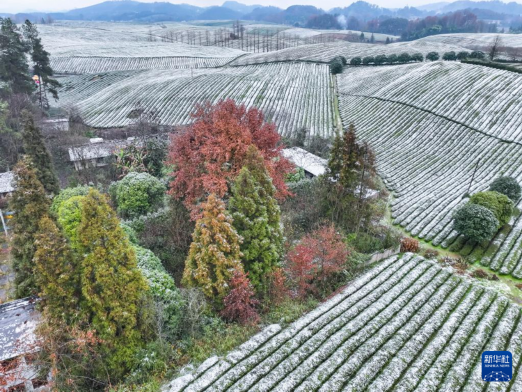 当日,位于贵州省遵义市湄潭县的万亩茶海迎来降雪,茶园被白雪覆盖,别有韵味。