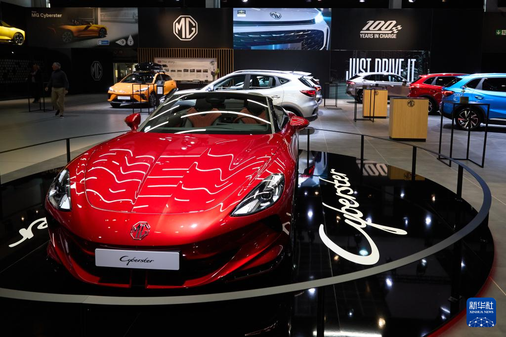 这是1月10日在比利时布鲁塞尔举办的2025布鲁塞尔车展上拍摄的上汽名爵汽车。