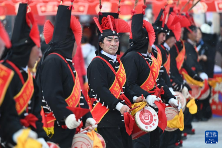 1月14日,演员表演国家级非物质文化遗产——凉州攻鼓子。