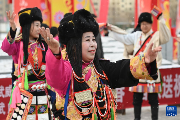 1月14日,演员表演甘肃省级非物质文化遗产——华锐则柔。