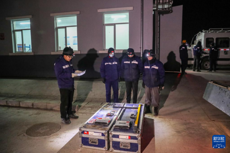 1月13日晚,在天祝西高铁综合维修基地,线路工正在清点工具材料。