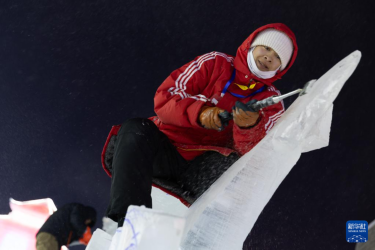 哈尔滨:冰雕选手展技艺