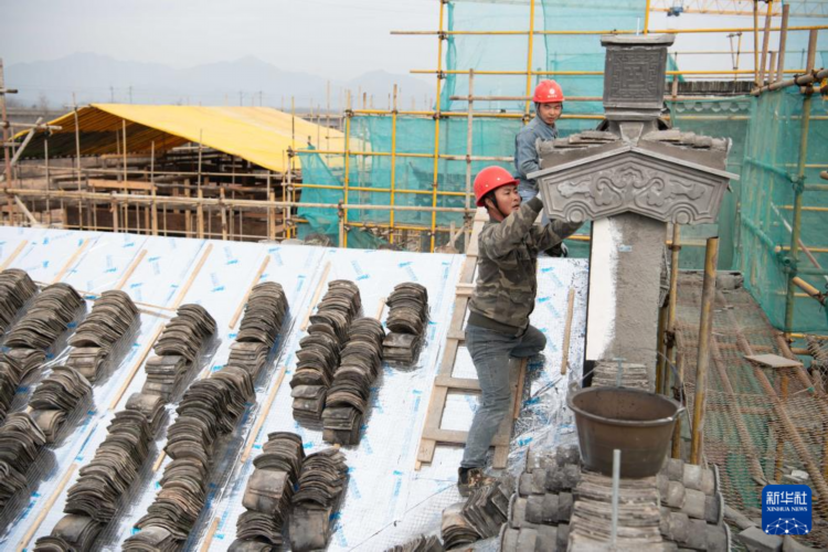 1月8日拍摄的安徽省黄山市休宁县一处传统徽派古民居复建工地现场。