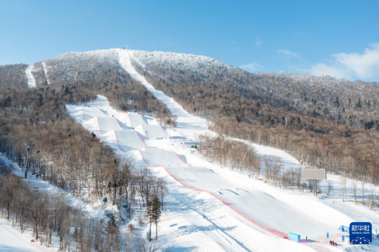 这是1月16日拍摄的2025年第九届亚洲冬季运动会雪上赛区坡面障碍技巧场地和大跳台场地(无人机照片)。