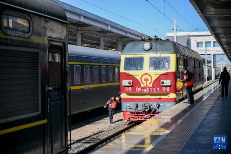 春运期间,运行在内蒙古草原深处的6856/7次列车座无虚席。这趟连接二连浩特与呼和浩特的列车全程491公里,票价53元,沿途经停28个车站,被广大农牧民亲切称为草原“慢火车”。