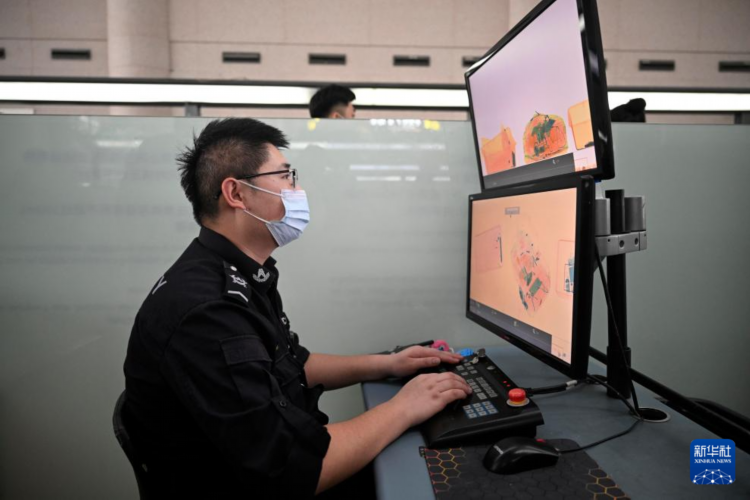 1月17日,银川河东国际机场地面交通一体化管理中心工作人员在对交通状况进行监控。