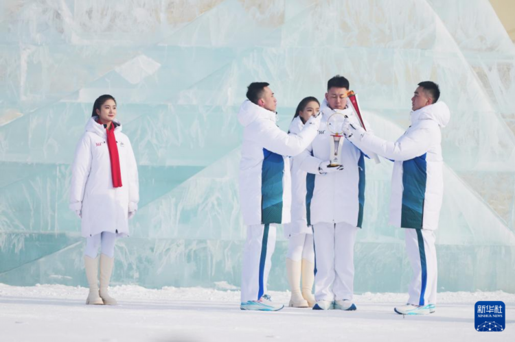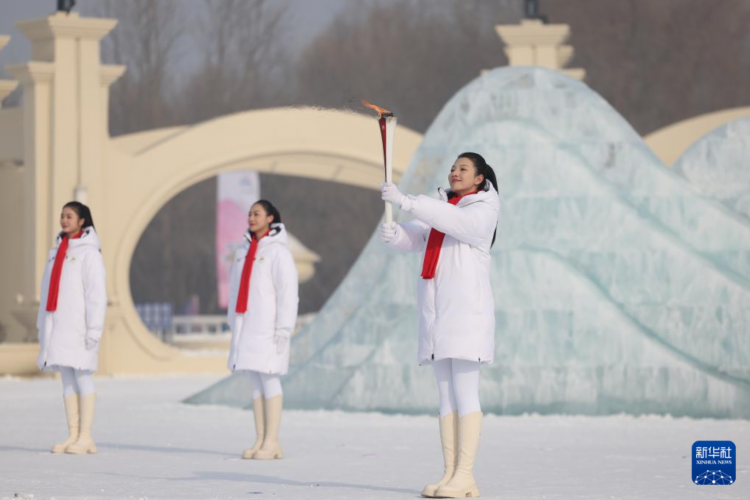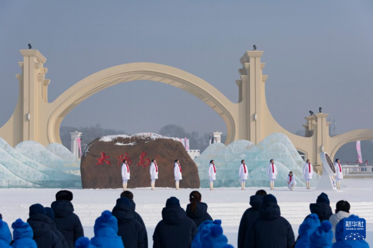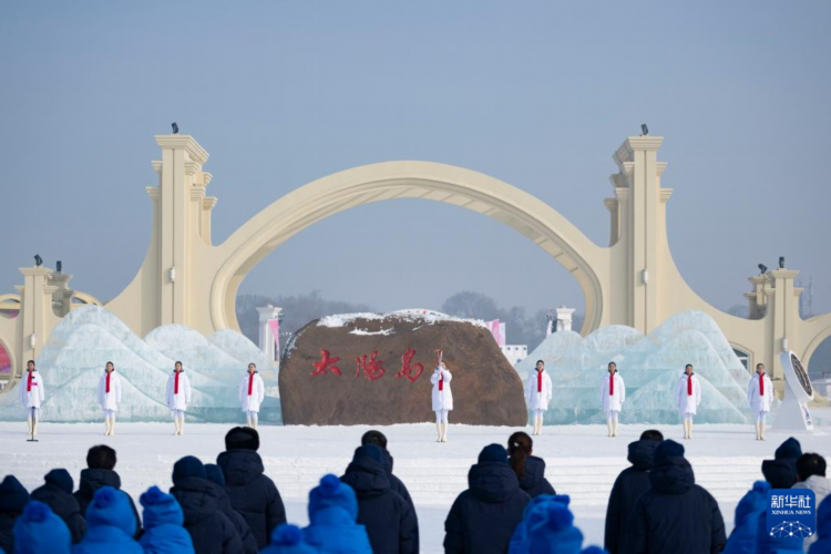 这是1月20日拍摄的太阳岛风景区举行的2025年第九届亚洲冬季运动会火种采集仪式现场。