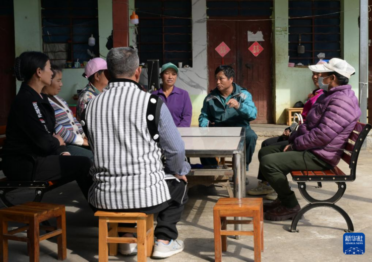 1月12日,桑南才(右三)在称杆乡双奎地村勒地二组为当地群众宣讲政策。