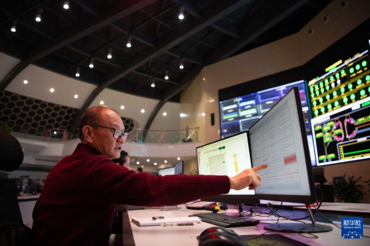 1月18日,在全超导托卡马克核聚变实验装置(EAST)控制大厅,EAST物理实验总负责人龚先祖在一次冲击实验中与团队成员交流。