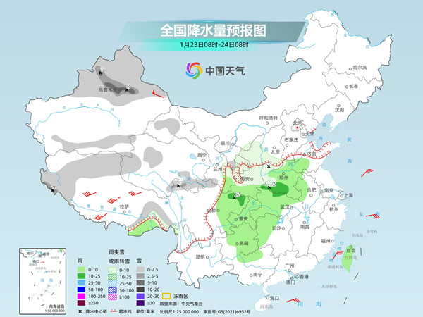 明天,新疆北疆大部和南疆高海拔山区、西藏西部和东南部、青海南部、甘肃东部、宁夏南部、陕西中北部、山西南部、河南西部山区等地部分地区有小到中雪或雨夹雪,其中,新疆沿天山地区北侧、西藏西南部等地部分地区有大雪。陕西南部、四川中东部、重庆、贵州中东部、湖北中西部、湖南西部、河南、安徽西北部、山东西南部、台湾岛等地部分地区有中雨。