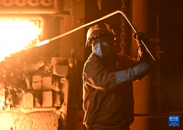 冬夜里,位于河南洛阳的中信重工机械股份有限公司冶炼车间内机器轰鸣,钢花飞溅。1600多摄氏度的钢水将炉前温度带到了近50摄氏度。电炉班的工人顶着高温,头戴防护盔,身着阻燃服,手持测温探棒在炉前忙碌,与钢花共舞。