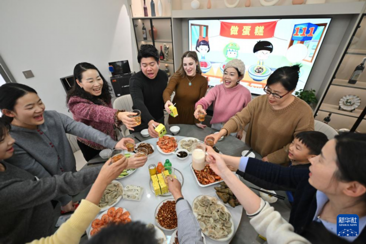 在天津市蓟州区官庄镇南营村,历剑和欧阳莎莎一家聚餐(1月19日摄)。