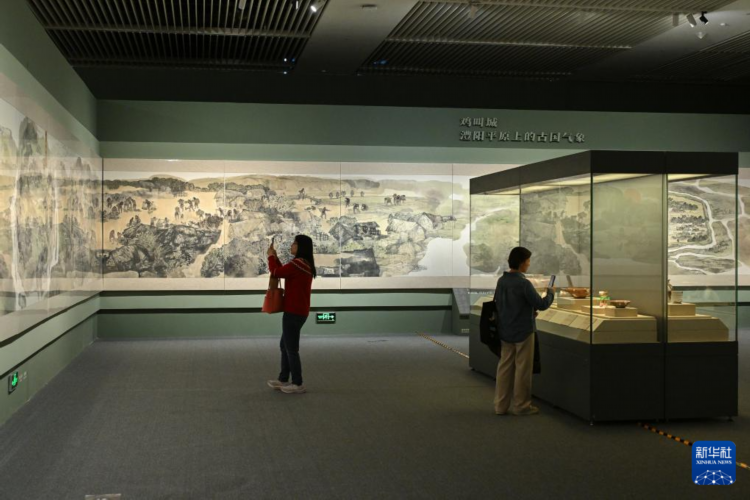 当日,由湖南省文化和旅游厅主办、湖南省文物局承办、湖南省文物考古研究院执行的“万古长歌——湖南史前文明图卷展”在中国国家博物馆开幕。该展首次用国画艺术全景再现湖南史前文明演进的宏大历程。《万古长歌·湖南史前文明图卷》由多位画家历经两年创作完成,作品长140米、高1.8米。