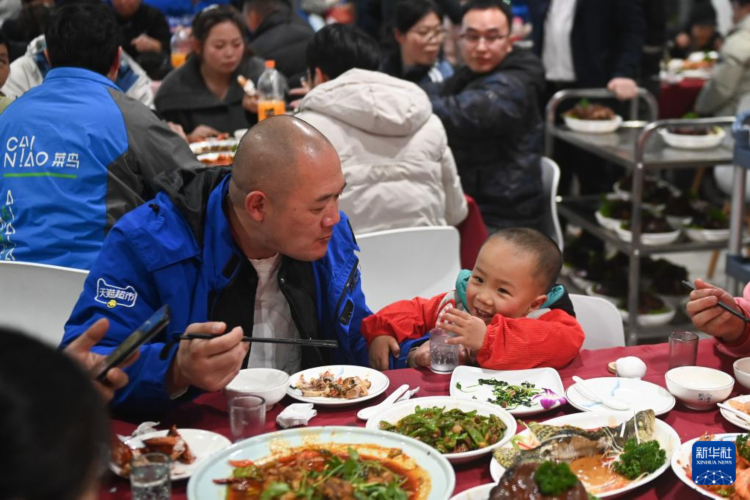 当日,200余名大部分来自外地的快递员及家属受邀在浙江杭州菜鸟智慧物流网络有限公司总部参加一场“年夜饭”活动,提前在异乡感受春节团聚的温暖。