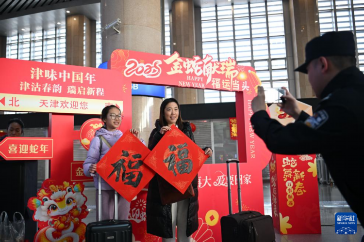 当日是北方小年,天津站联合天津市曲艺家协会,在天津站候车厅举行“金蛇献瑞护出行 温馨有序保平安”小年送福活动。来自天津市曲艺家协会的艺术家们为候车旅客们献上相声、快板等津味儿曲艺表演,并为旅客送福字,为旅客的返乡路增添温馨快乐。
