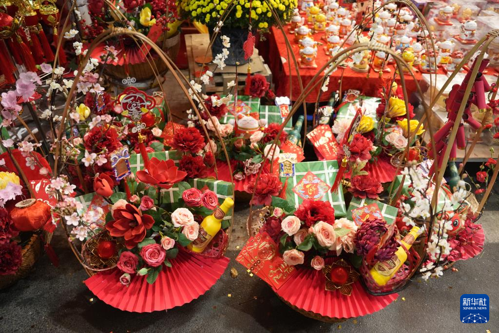 1月22日,在位于越南首都河内的马市街,琳琅满目的春节装饰品中不乏蛇年饰品。 农历春节是越南重要的节日。求字、贴春联、买桃花、包方粽等传统习俗延续至今。春节前夕,越南首都河内的马市街早已换上了一种新颜色——“春节红”。民众涌向此处,置年货、拍美照,传统年味飘出新风尚。 新华社记者 胡佳丽 摄