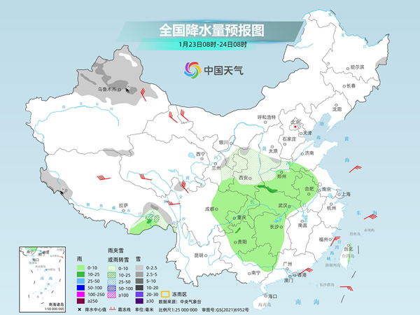 具体来看,中央气象台预计,今天,新疆北部、西藏西南部和东部、西北地区东北部等地部分地区有小雪或雨夹雪,其中,新疆沿天山地区、西藏西南部等地局地有中到大雪。西藏东南部、陕西南部、河南、安徽中北部、湖北、湖南、四川盆地中东部、重庆、贵州中东部、广西北部等地部分地区有小到中雨。