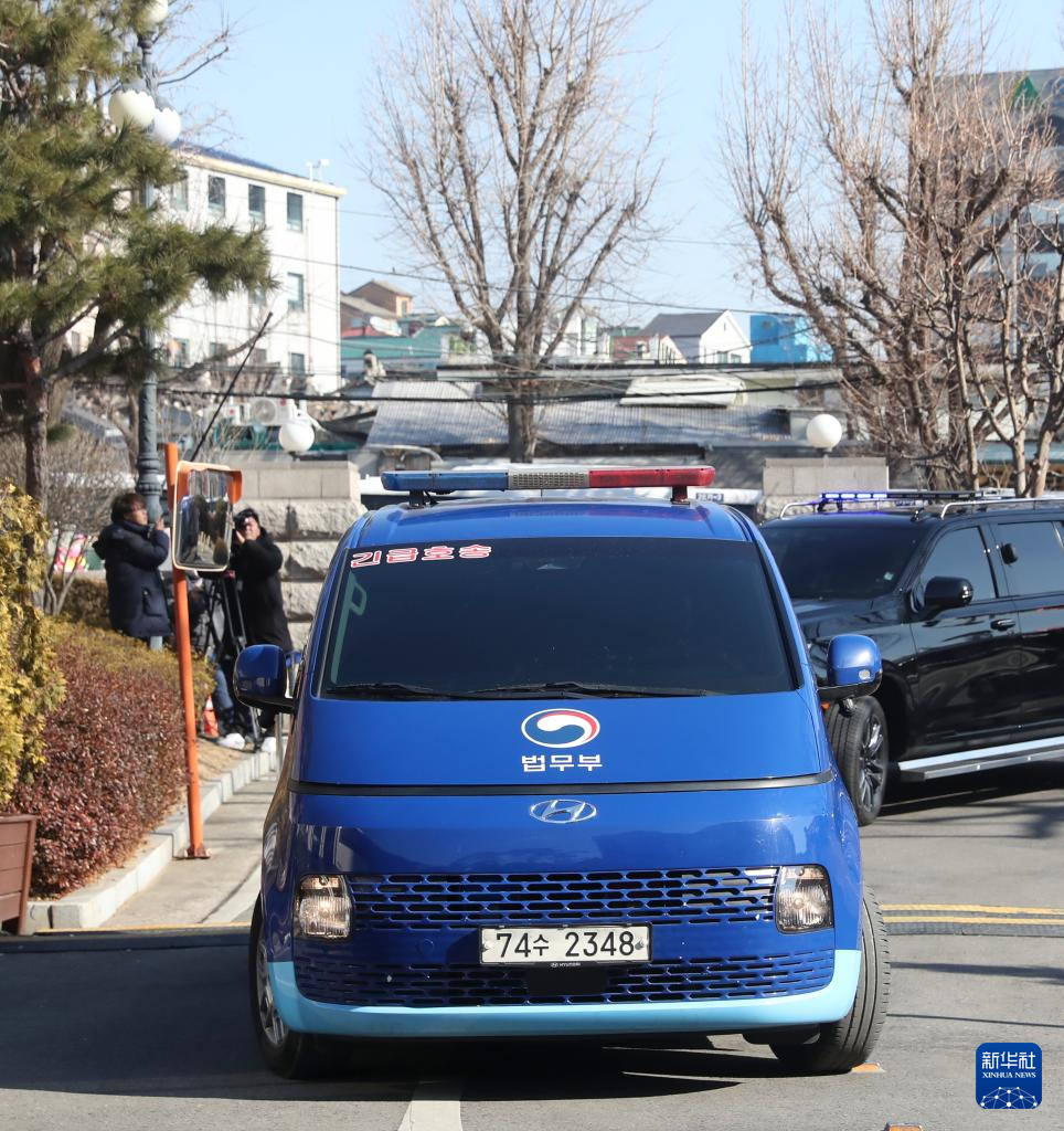 1月23日,尹锡悦乘坐的车辆进入韩国首尔宪法法院。