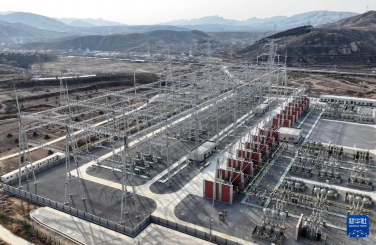 1月23日拍摄的位于河北省保定市的国网保西500千伏变电站(无人机照片)。