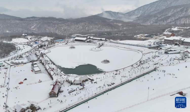 人们在位于成都市大邑县的西岭雪山滑雪场游玩(1月14日摄,无人机照片)。