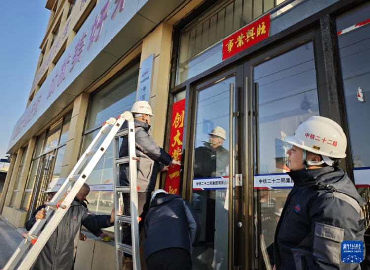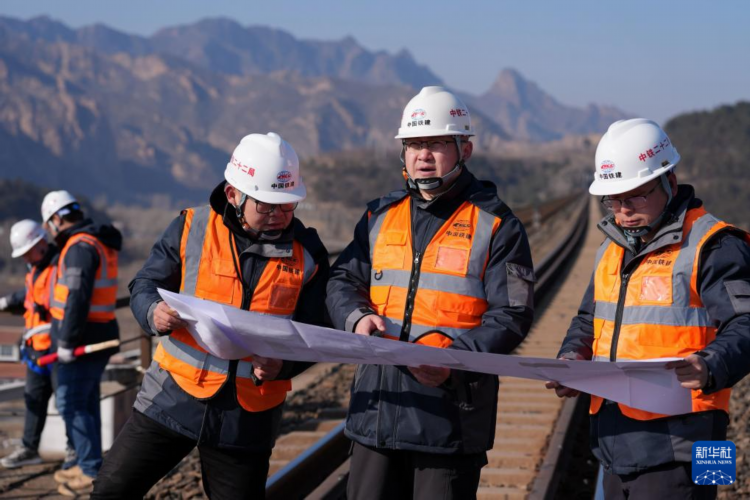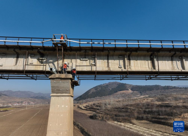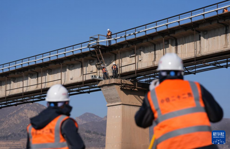 1月23日,中铁二十二局的建设者在河北省承德市围场满族蒙古族自治县的换梁施工现场作业。