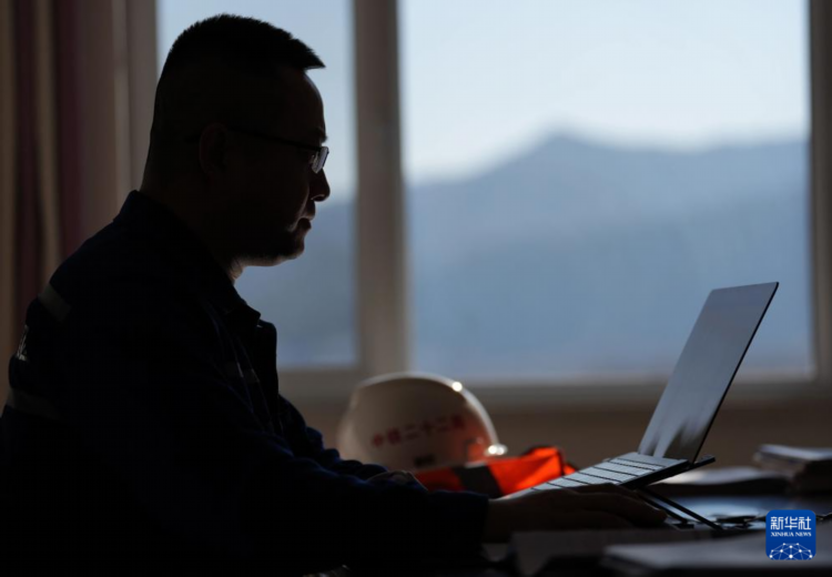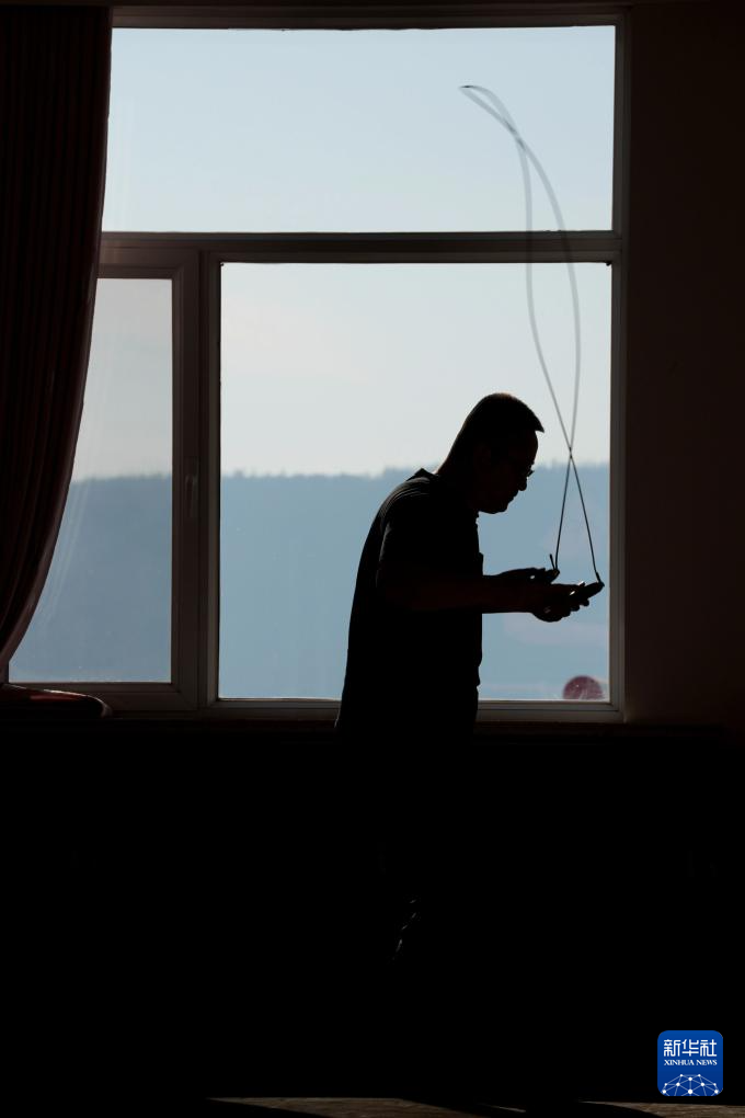1月23日,姜跃龙在河北省承德市围场满族蒙古族自治县的换梁施工现场通过对讲机和同事交流。