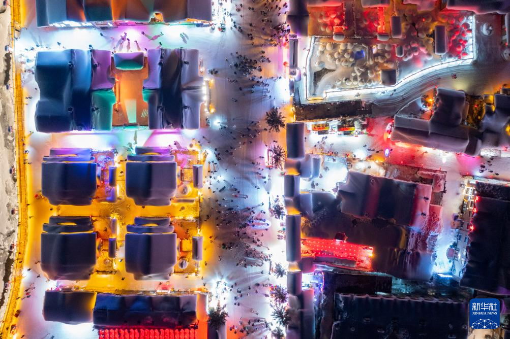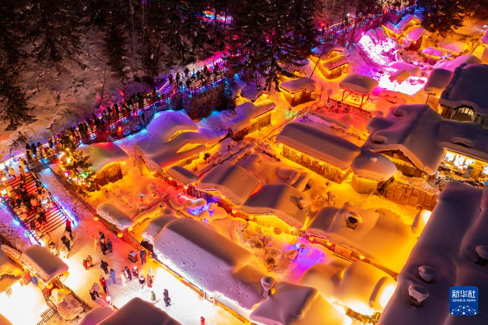 这是1月24日拍摄的“中国雪乡”景区夜景(无人机照片)。