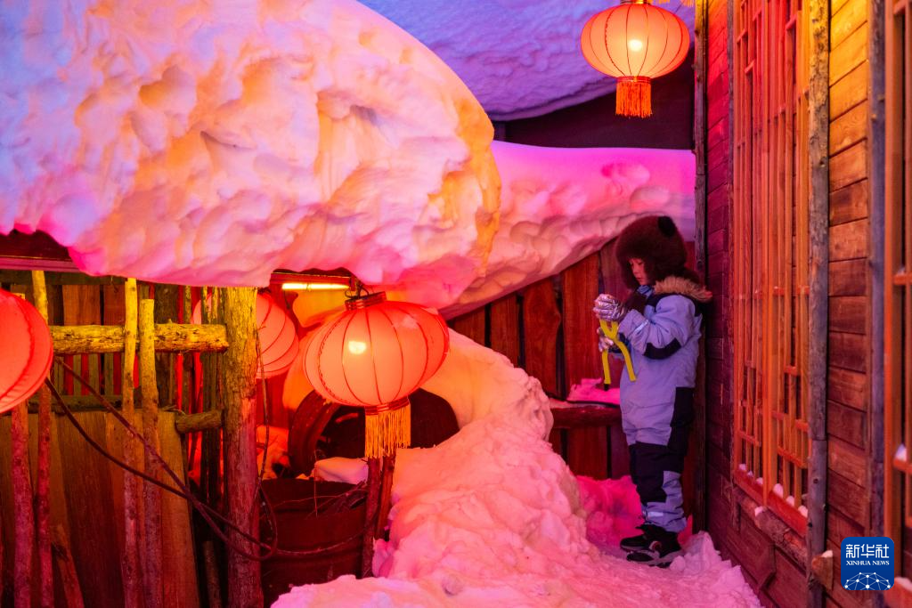 1月24日,小朋友在“中国雪乡”景区内游玩。