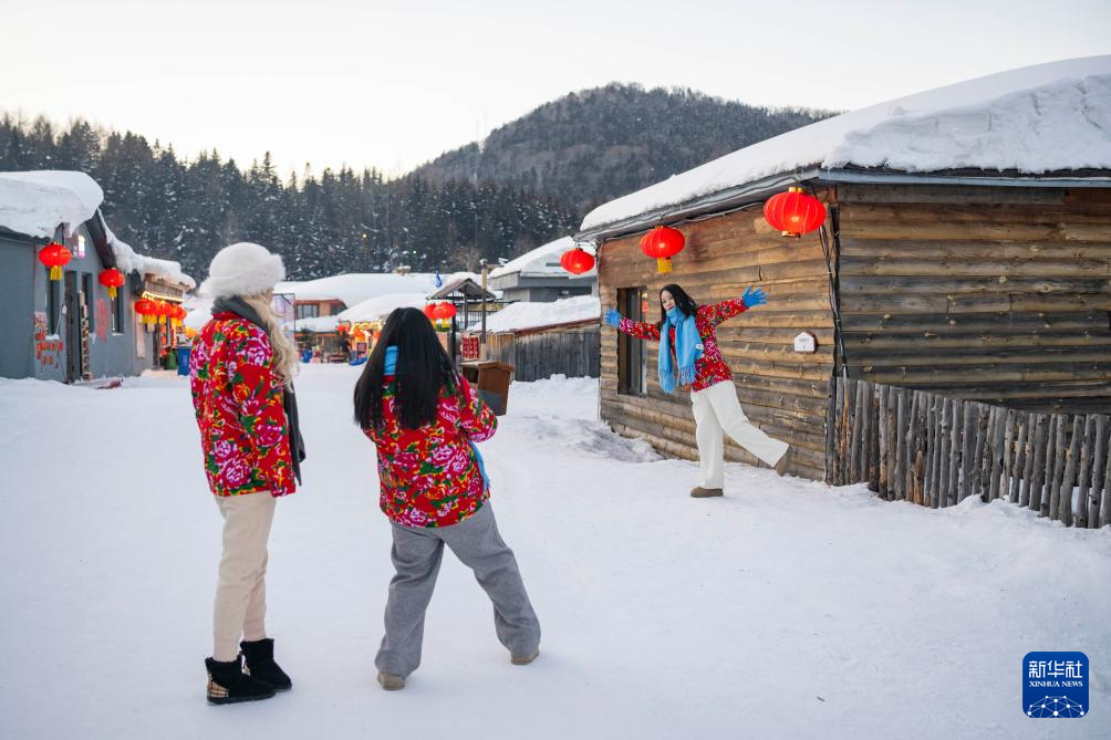 1月24日,游客在“中国雪乡”景区拍摄写真。