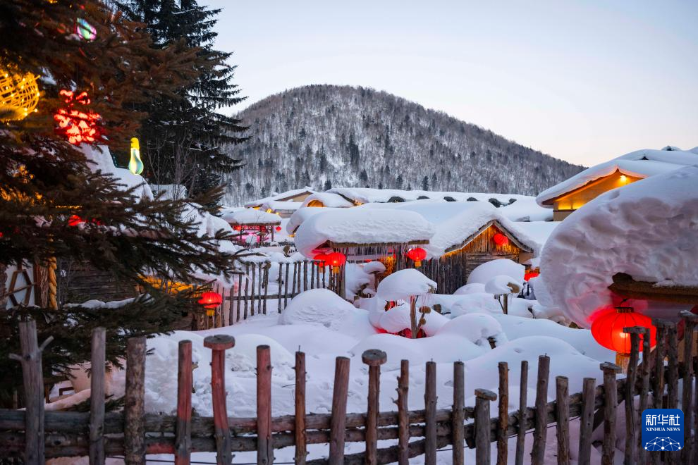 这是1月24日拍摄的“中国雪乡”景区傍晚景观。
