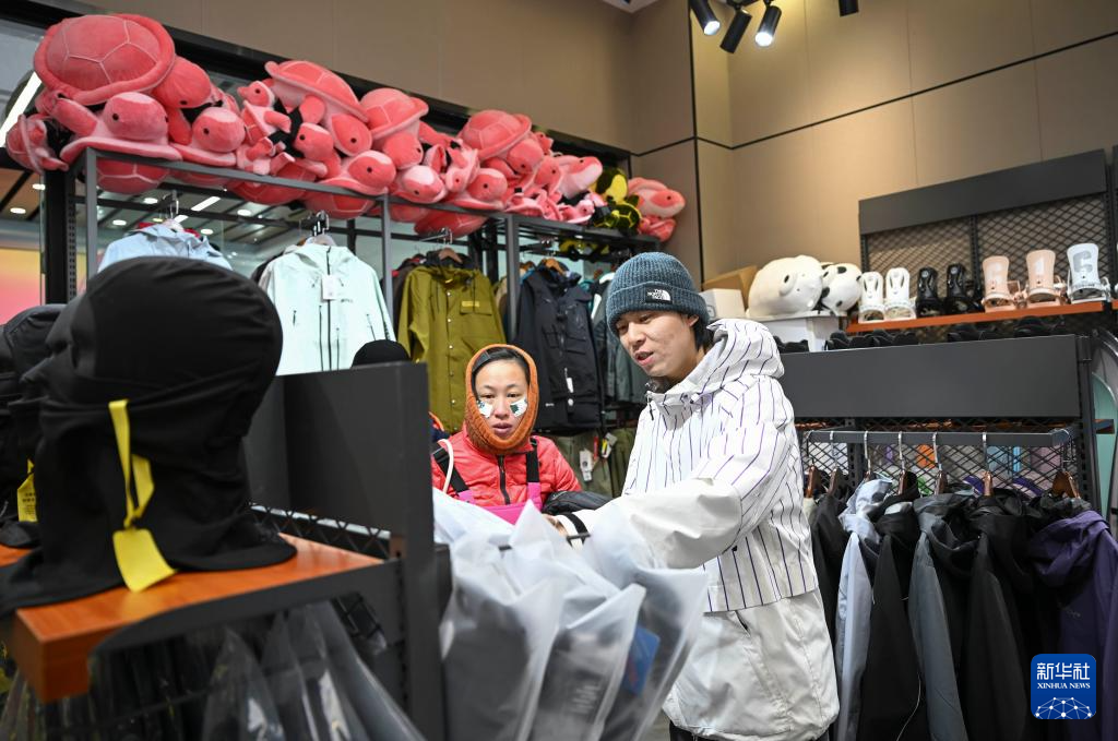 1月24日,游客在将军山国际滑雪度假区的一家雪具店选购商品。