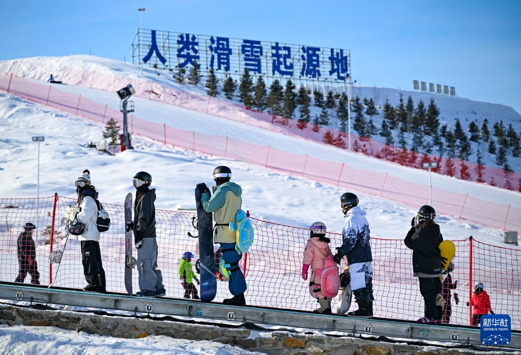 春节临近,新疆阿勒泰地区冰雪旅游正当时,来自天南地北的游客在滑雪场感受冰雪运动的乐趣。