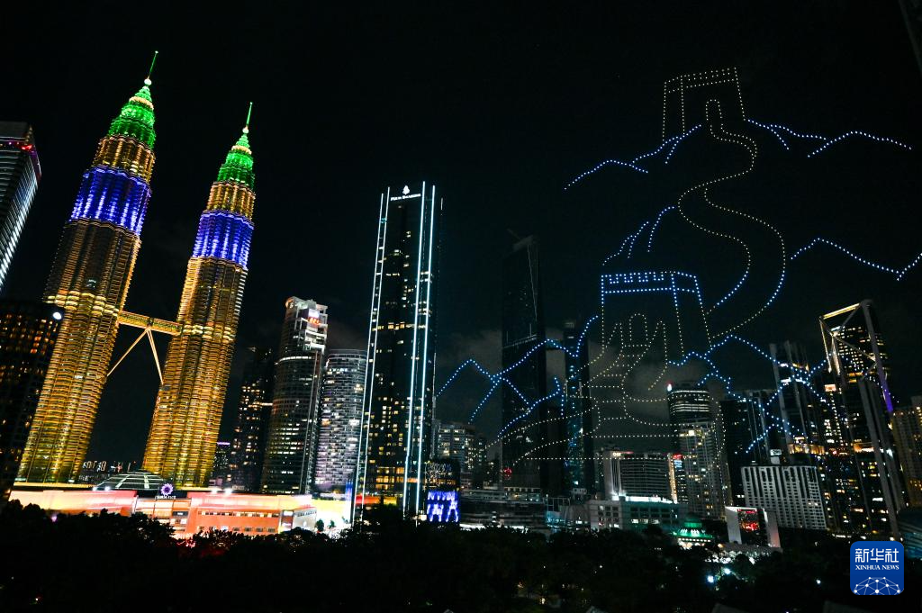 1月25日,在马来西亚吉隆坡举行的2025年“欢乐春节”全球启动仪式前,无人机展示“中马友谊万岁”字样。 2025年“欢乐春节”全球启动仪式暨“欢乐春节 五洲同欢”演出25日晚在马来西亚吉隆坡举行。 新华社记者 程一恒 摄