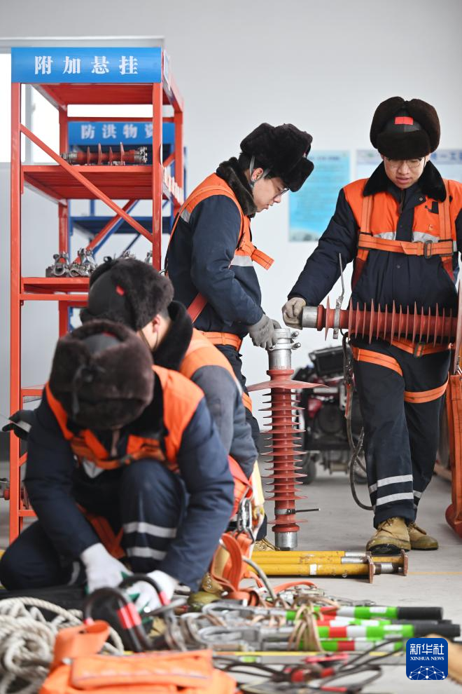 寒潮来袭,中国铁路北京局集团有限公司天津供电段供电维修车间组织应急抢险人员上岗待命,在雪后对铁道上方的接触网运行状态进行巡视,确保春运期间供电设备安全运行。