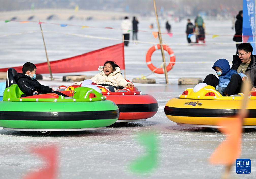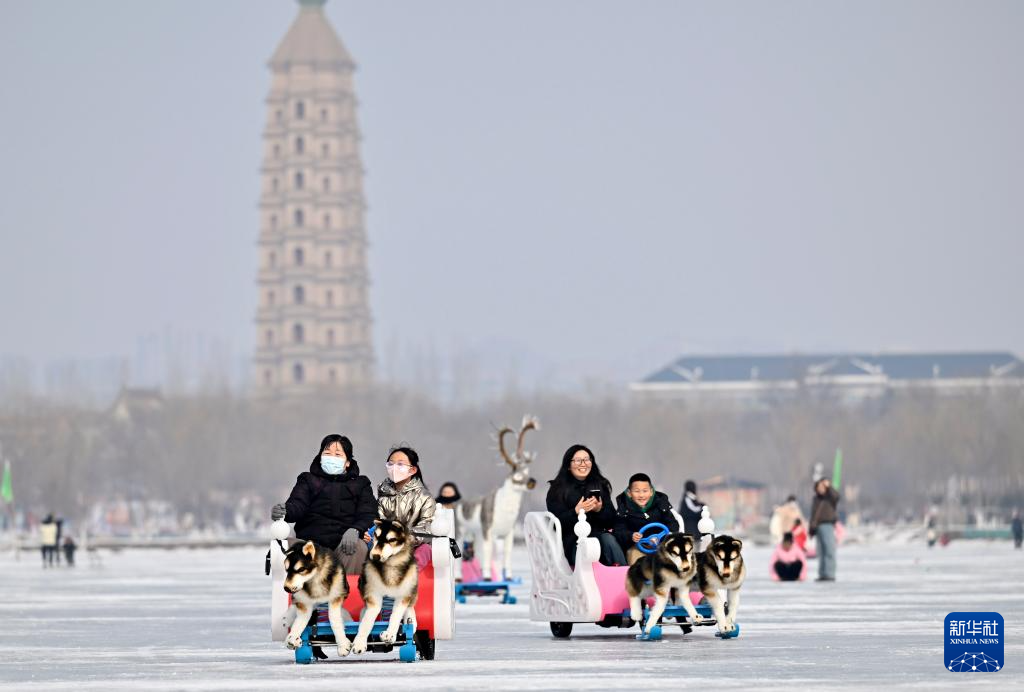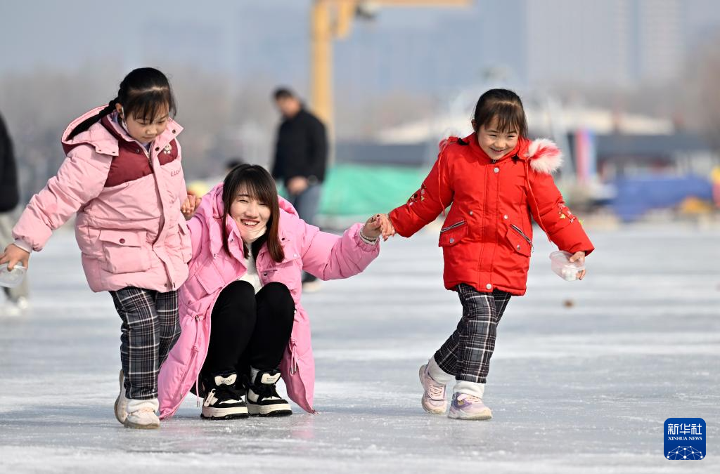 当日是农历大年初二,众多市民来到宁夏银川市北塔湖体验冰上运动,欢度春节。
