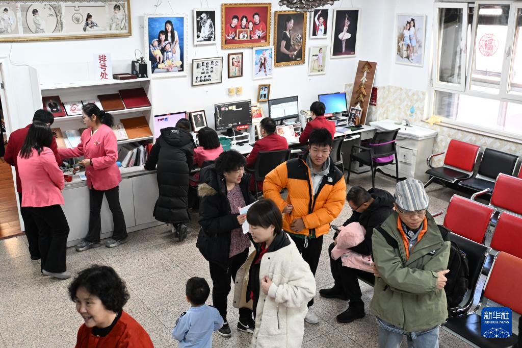 过年拍全家福,用影像定格团圆,是许多中国家庭过春节的仪式之一。正月初五,北京王府井中国照相馆内洋溢着浓浓年味,众多家庭以拍摄全家福的方式庆新春。