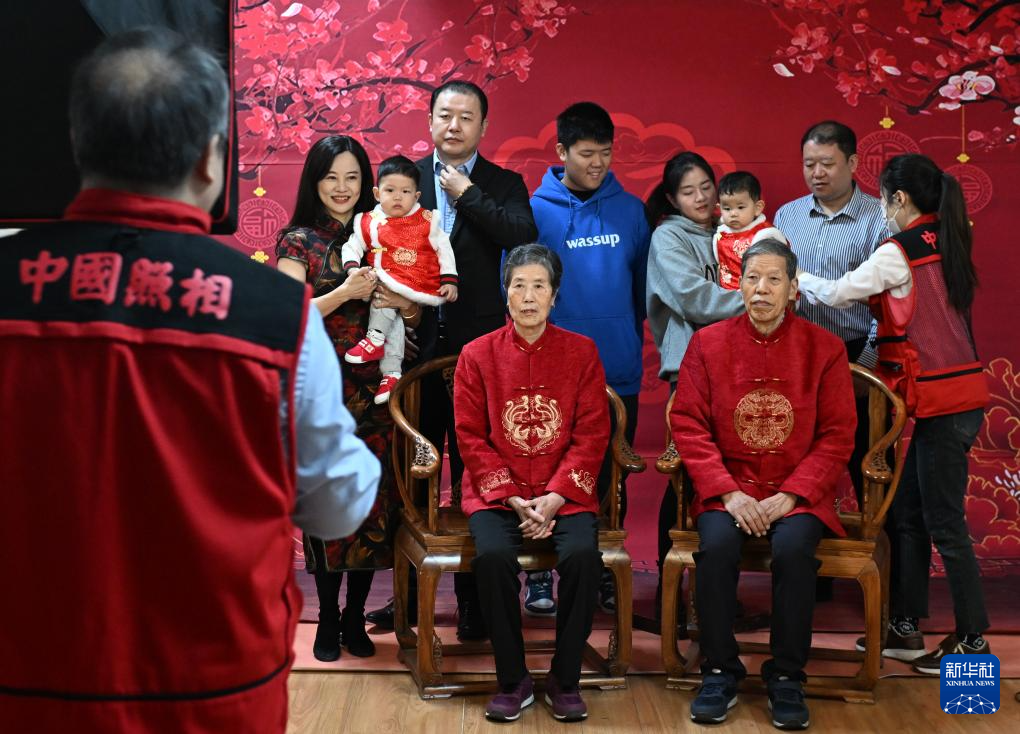 过年拍全家福,用影像定格团圆,是许多中国家庭过春节的仪式之一。正月初五,北京王府井中国照相馆内洋溢着浓浓年味,众多家庭以拍摄全家福的方式庆新春。