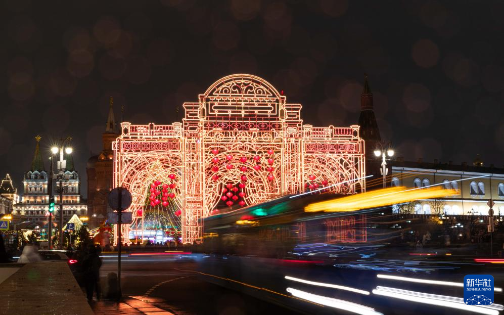 这是1月28日在俄罗斯首都莫斯科拍摄的中国新年主题装饰。