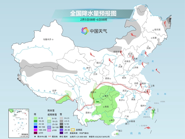 今起三天(2月5日至7日),南方将迎一次降水过程,明天降水范围最广,7日随着气温下降,贵州等地或发生雨雪转换,春运路上需谨防湿滑,注意交通安全。明天起,将有一股强冷空气影响中东部,华北和黄淮局地气温降幅可超10℃,需关注气温变化,及时添衣,谨防感冒。