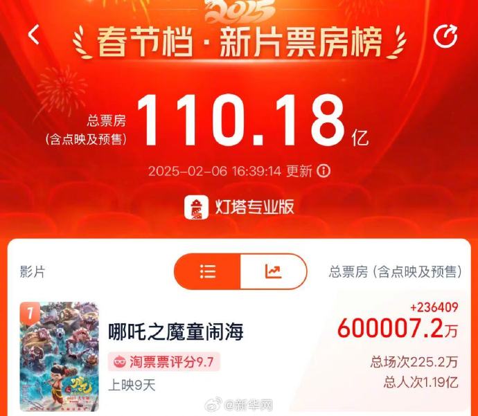 据网络平台数据,《哪吒之魔童闹海》总票房(含点映及预售)已突破60亿元。