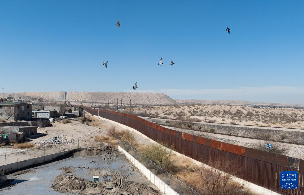 这是2月4日在墨西哥奇瓦瓦州华雷斯市航拍的墨美边境墙,墙的左侧是墨西哥。