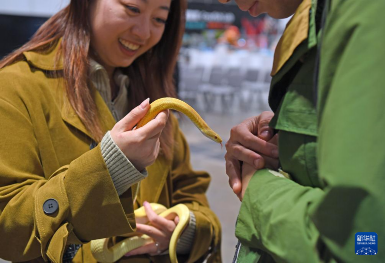 2月6日,在香港会议展览中心,观众观赏一条蛇。