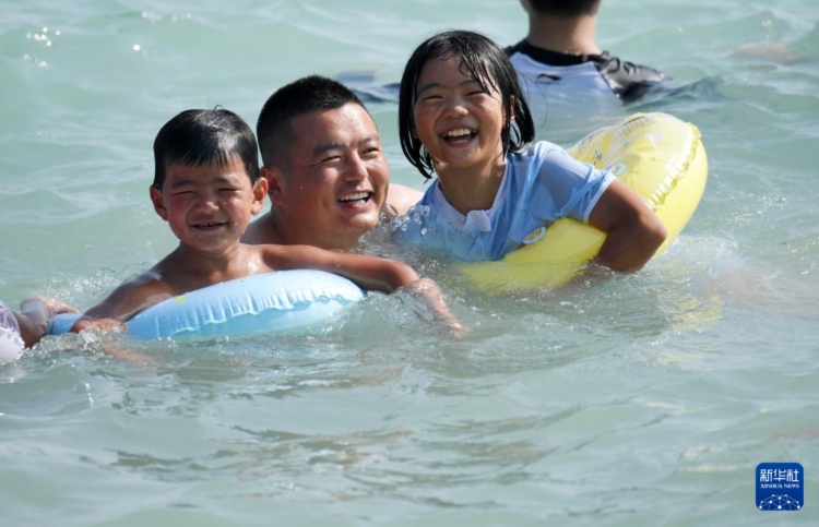 2月6日,游客在三亚市大东海景区游泳。