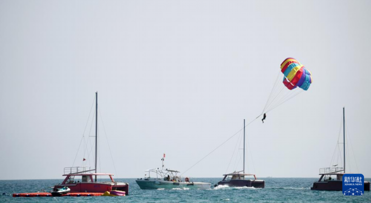 2月6日,游客在三亚市大东海景区体验海上项目。