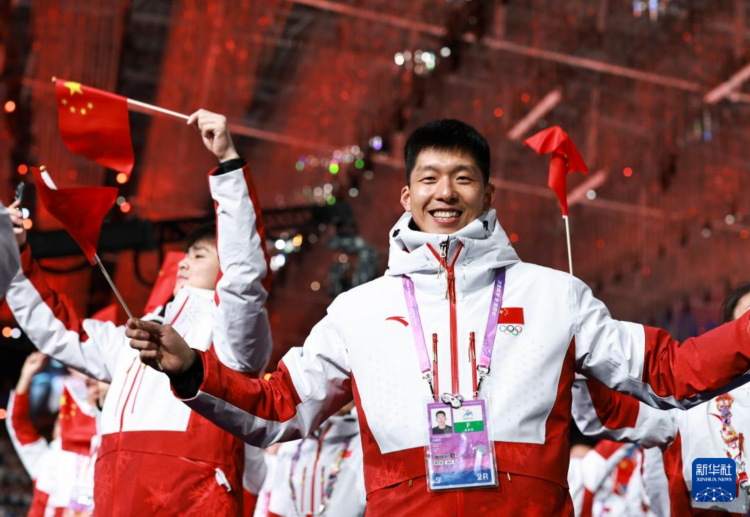 2月7日,中国体育代表团成员闫星元在开幕式上入场。